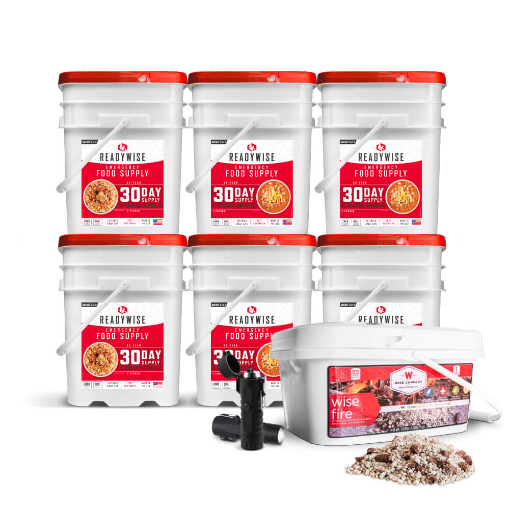 90 Day Food Supply + 1 gal Wise Fire + Plasma Lighter